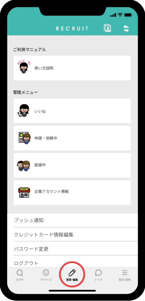 ①登録・編集を選択
